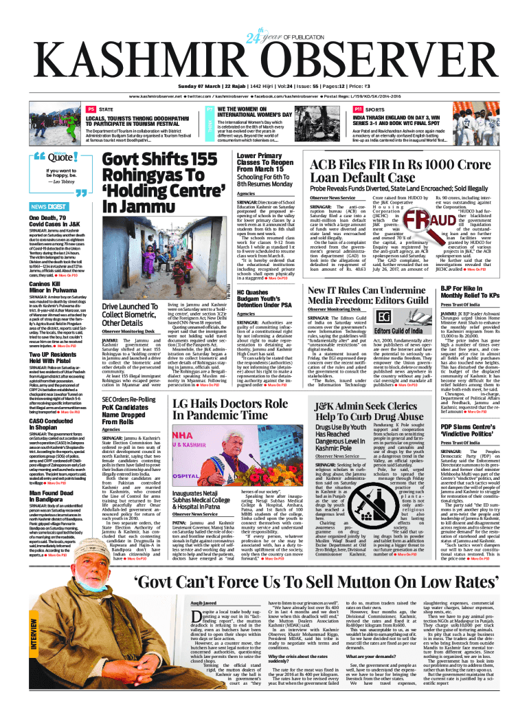 www.kashmirobserver.net twitter.com / kashmirobserver facebook.com/kashmirobserver Postal Reign: L/159/KO/SK/201420165