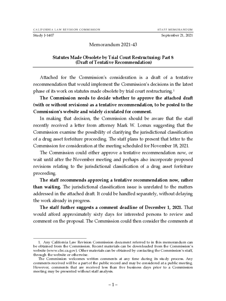 CALIFORNIA LAW REVISION COMMISSIONSTAFF MEMORANDUMStudy J1407September 21, 2021Memorandum 202143