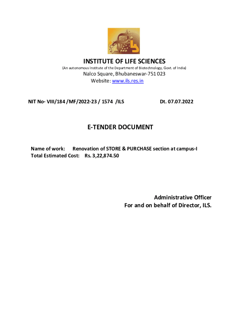INSTITUTE OF LIFE SCIENCES (An autonomous Institute of the Department of Biotechnology, Govt. of India)Also Square, Bhubaneswar751 023 Website: www.ils.res.inNIT No VIII/184 /MF/202223 / 1574 /LSD.