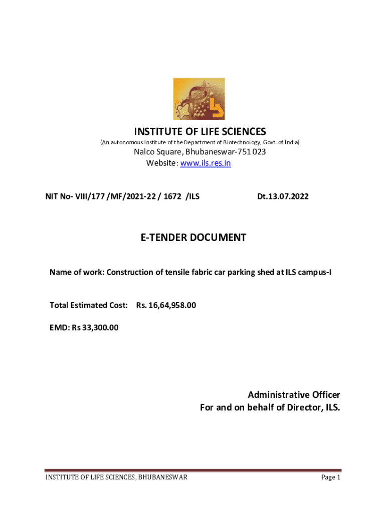 Website: www.ils.res.inNIT No VIII/177 /MF/202122 / 1672 /LSD.13.07.2022ETENDER