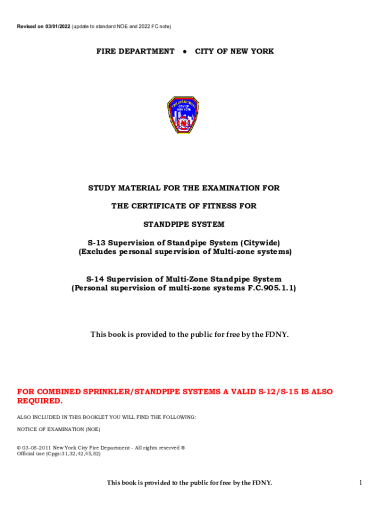 Revised on 03/01/2022 (update to standard NOE and 2022 FC note)FIRE DEPARTMENTALLY OF NEW RESTUDY MATERIAL FOR THE EXAMINATION FOR