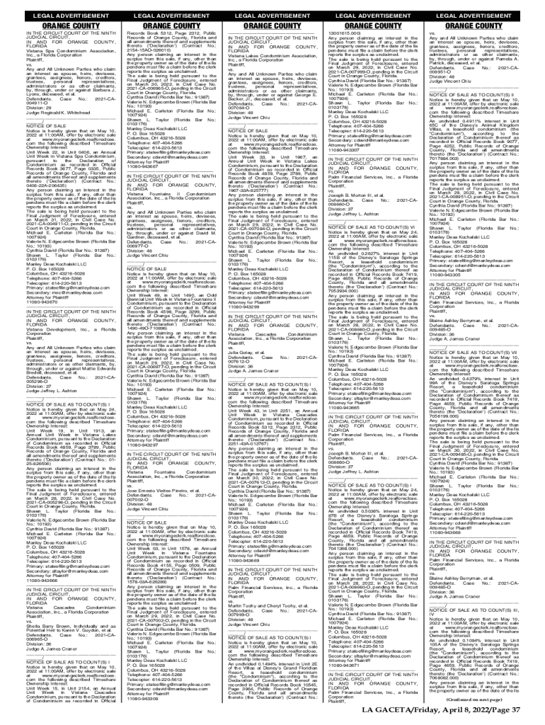 LEGAL ADVERTISEMENTORANGE COUNTY IN THE CIRCUIT COURT OF THE NINTH