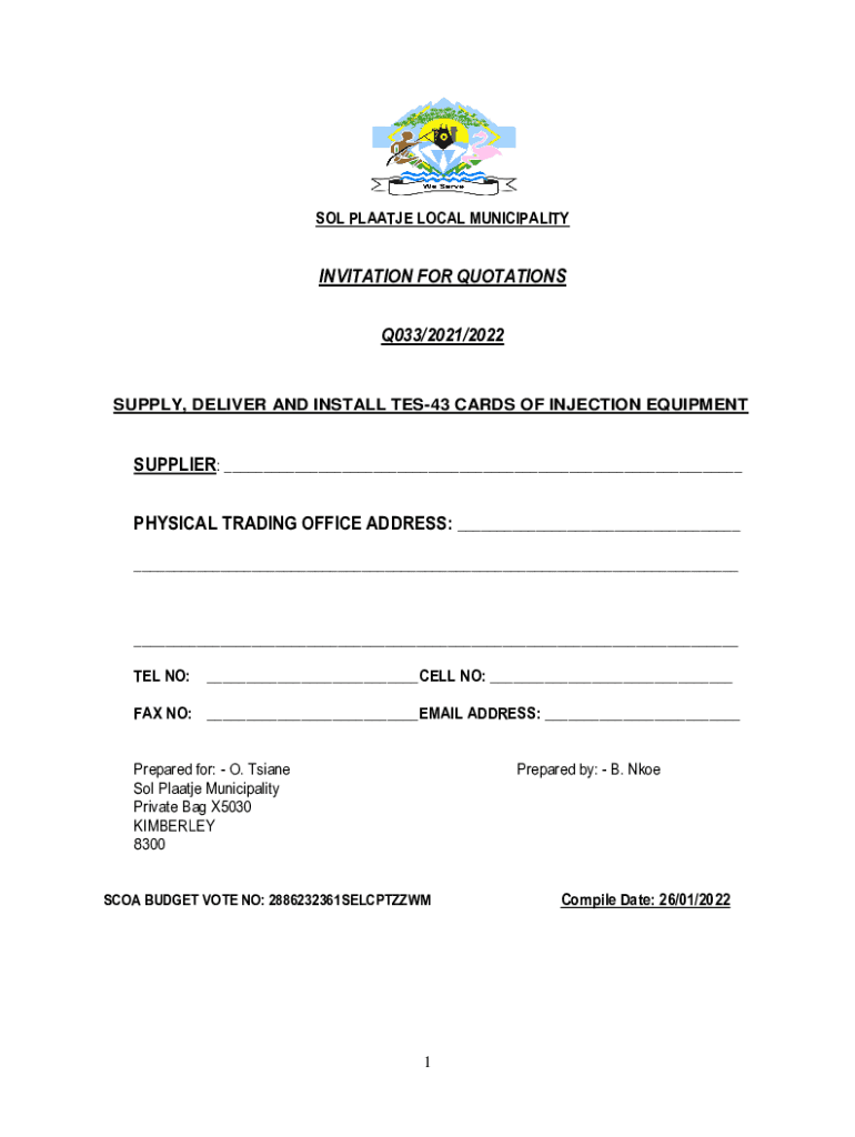 SOL PLATE LOCAL MUNICIPALITYINVITATION FOR QUOTATIONS