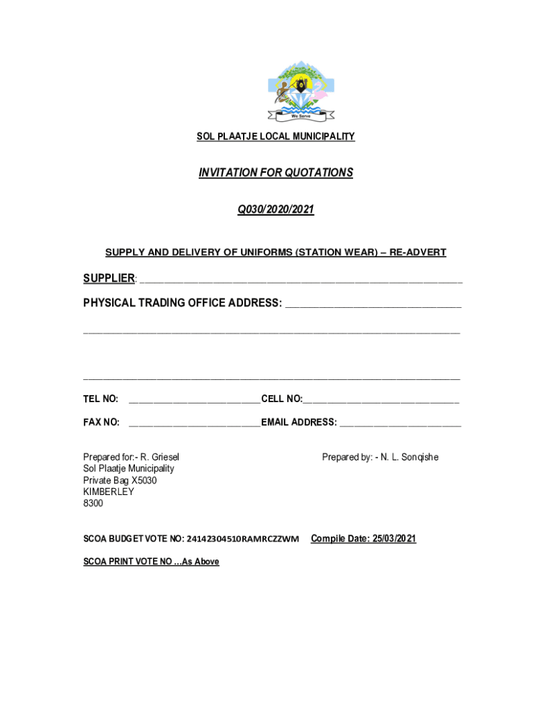 SOL PLATE LOCAL MUNICIPALITYINVITATION FOR QUOTATIONS