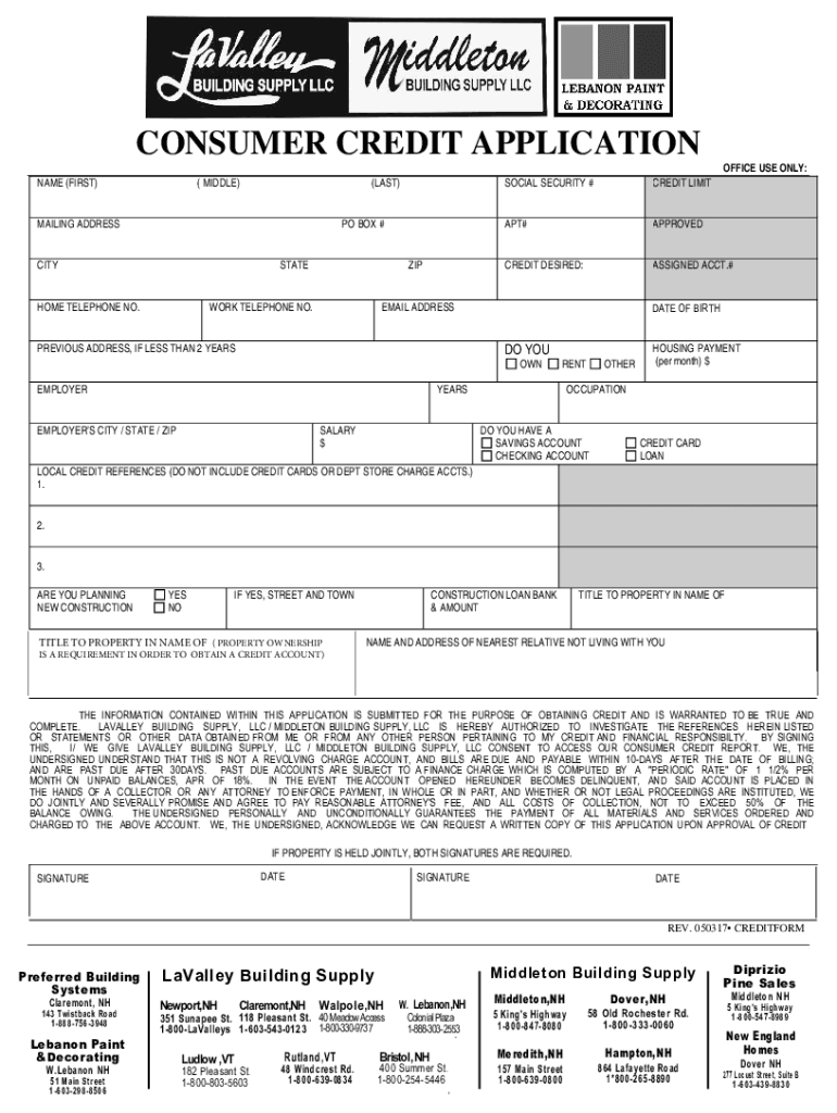 CONSUMER CREDIT APPLICATION