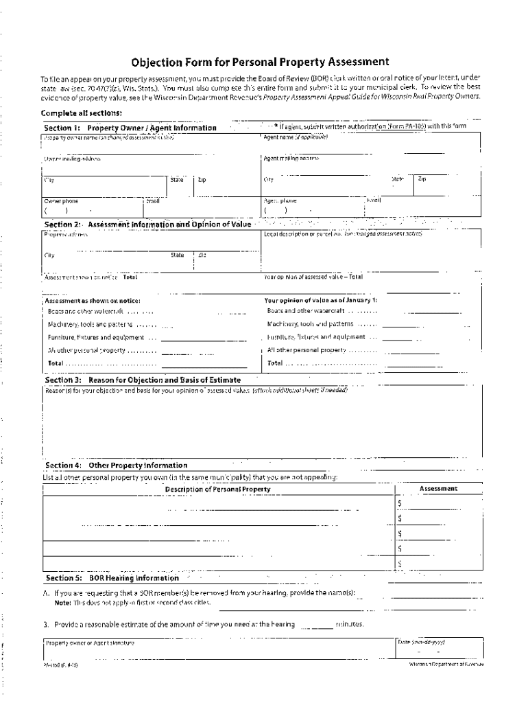 Get the free Objection Form for Personal Property Assessment Waterloo, WI