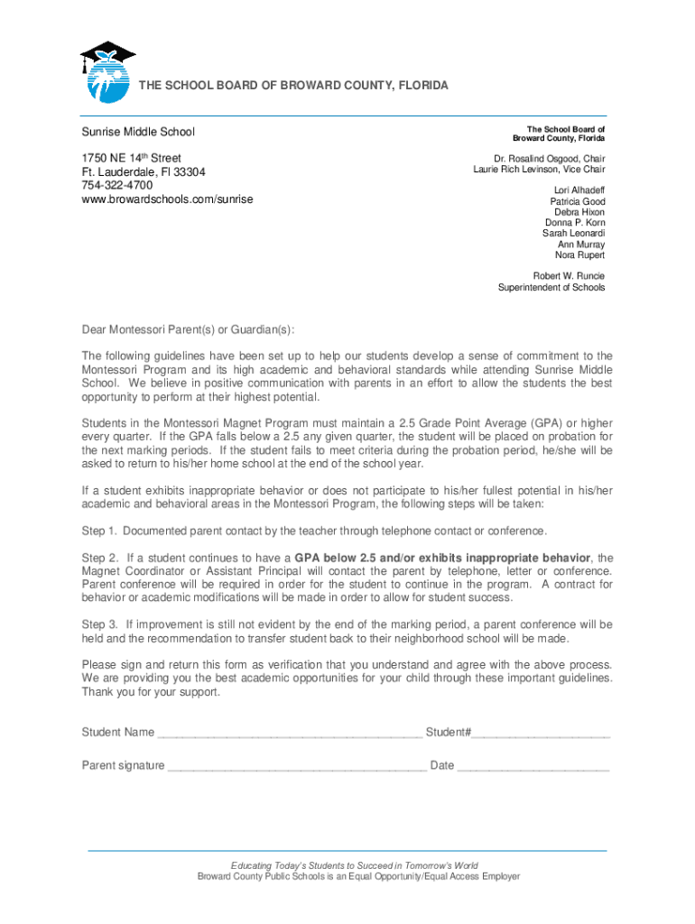 Get the free THE SCHOOL BOARD OF BROWARD COUNTY, FLORIDA Dear ...