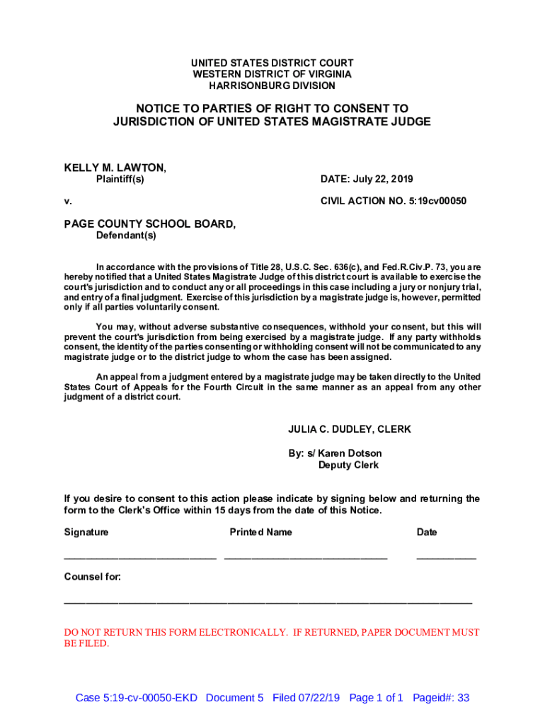 Get the free NOTICE TO PARTIES OF RIGHT TO CONSENT TO ...