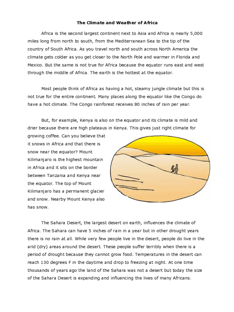 The Climate and Weather of Africa is the second largest continent next to Asia and Africa is nearly 5,000 miles long from north to south, from the Mediterranean Sea to the tip of the country of South
