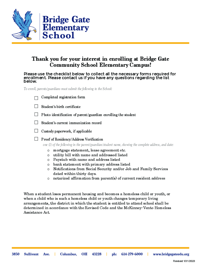Thank you for your interest in enrolling at Bridge Gate Community School Elementary Campus! Please use the checklist below to collect all the necessary forms required for enrollment. Please contact