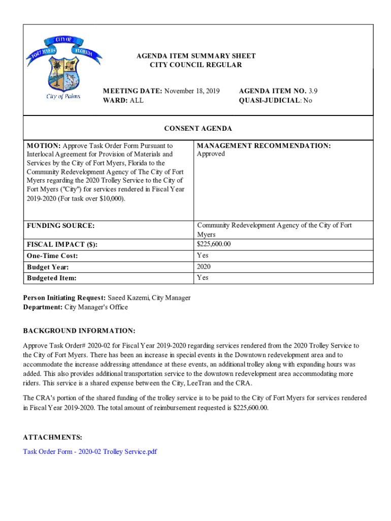 Get the free Task Order Form Pursuant to Interlocal Agreement for Provision of Materials and Serv...