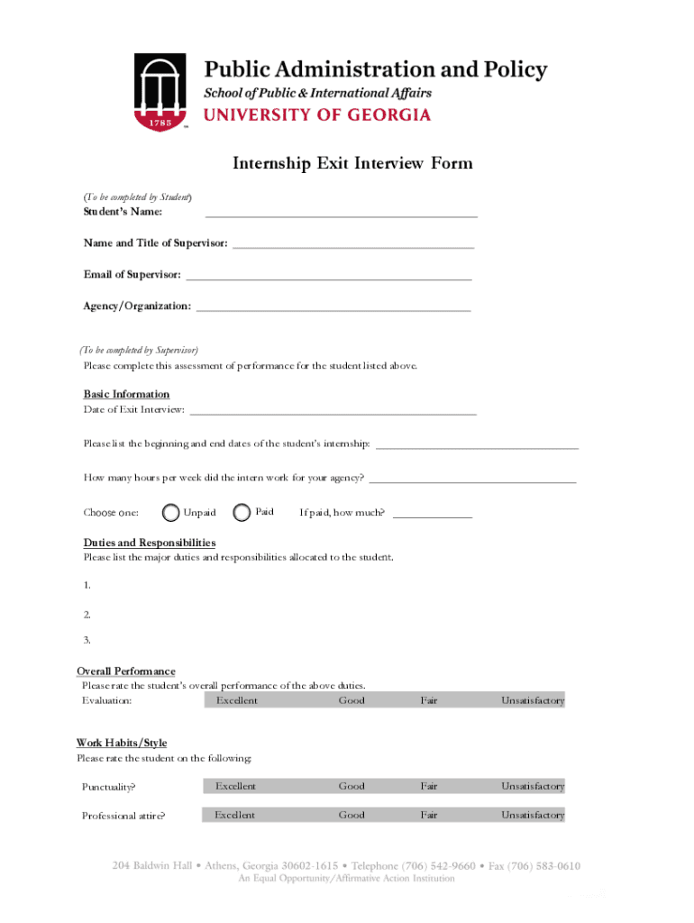 Get the free Sample exit interview for site supervisor Student:Please give ... - spia uga