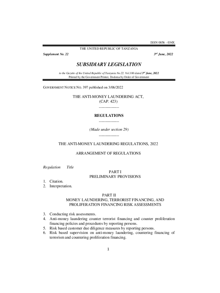 Antimony Laundering GN NO. 397(Contd) ISSN 0856 034X THE UNITED REPUBLIC OF TANZANIA 3rd June, 2022Supplement No. 22SUBSIDIARY LEGISLATION to the Gazette of the United Republic of Tanzania No.22.