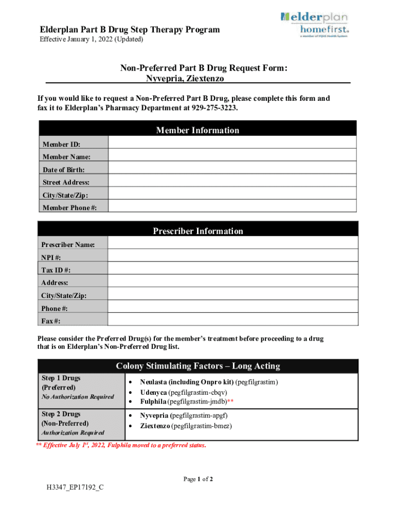Elder plan Part B Drug Step Therapy Program Effective January 1, 2022 (Updated)Preferred Part B Drug Request Form: Nigeria, Ziextenzo If you would like to request a Preferred Part B Drug, please complete