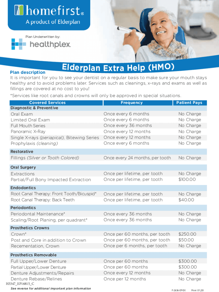 Plan Underwritten by:El de rpm an Extra H e LP (HMO)Plan description It is important for you to see your dentist on a regular basis to make sure your mouth stays healthy and to avoid problems later.