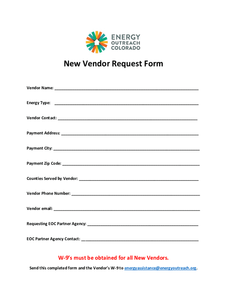 Get the free New Vendor Request Form - Energy Outreach Colorado