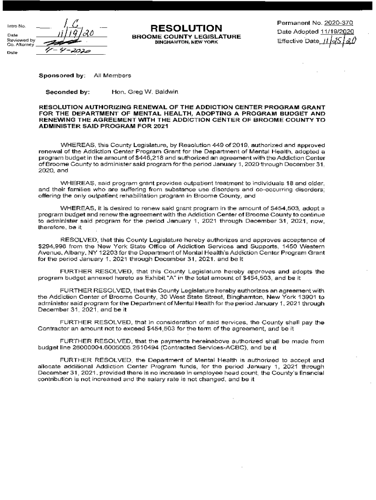 Intro No. Date Reviewed by1f, RESOLUTION)BROOKE COUNTY LEGISLATURE BINGHAMTON, NEW Yoko. AttorneyPermanent No. 2020370 Date Adopted 11/19/2020DateSponsored by: Seconded by:Isis f\'4 0Effective Date,
