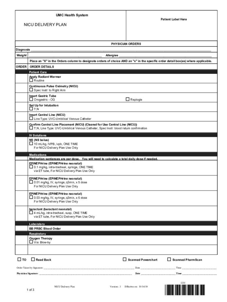 Get the free NICU DELIVERY PLAN - UMC Health System