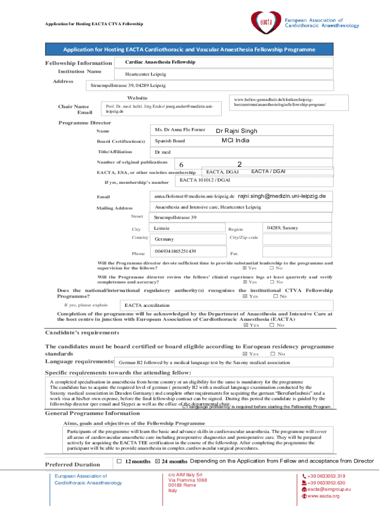 Get the free Application for Hosting EACTA Cardiothoracic and Vascular ...