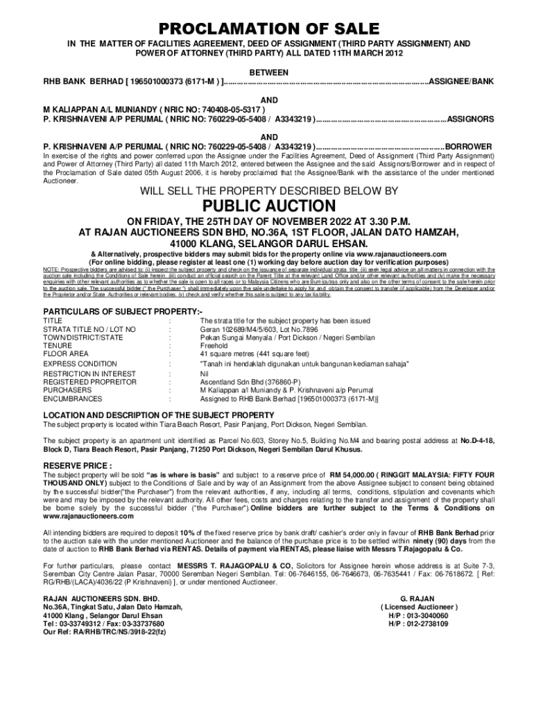 PROCLAMATION OF SALE