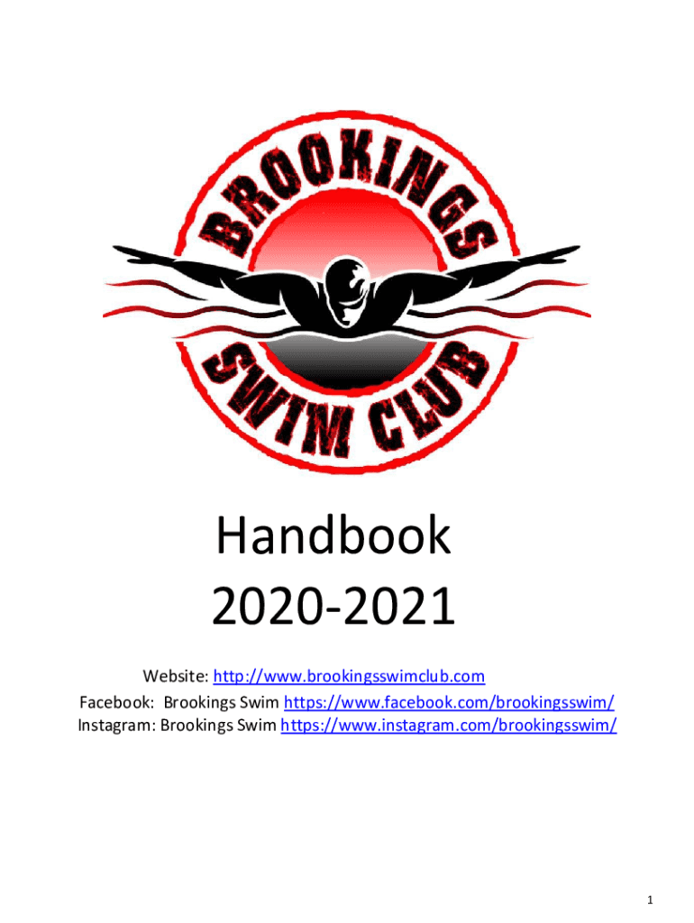 Handbook 20202021 Website: http://www.brookingsswimclub.com Facebook: Brookings Swim https://www.facebook.com/brookingsswim/ Instagram: Brookings Swim https://www.instagram.com/brookingsswim/1Table