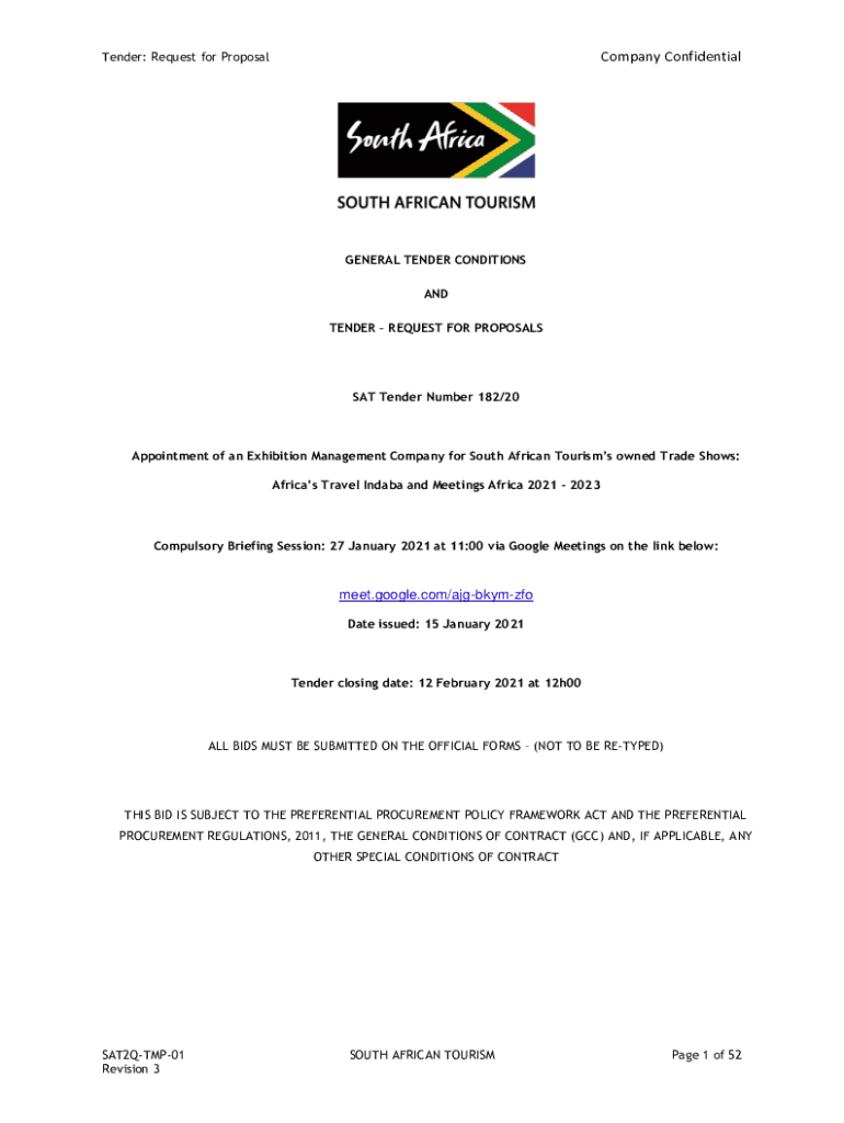 TENDER REQUEST FOR PROPOSALS SAT Tender Number 182/20Appointment of an Exhibition Management Company for South African