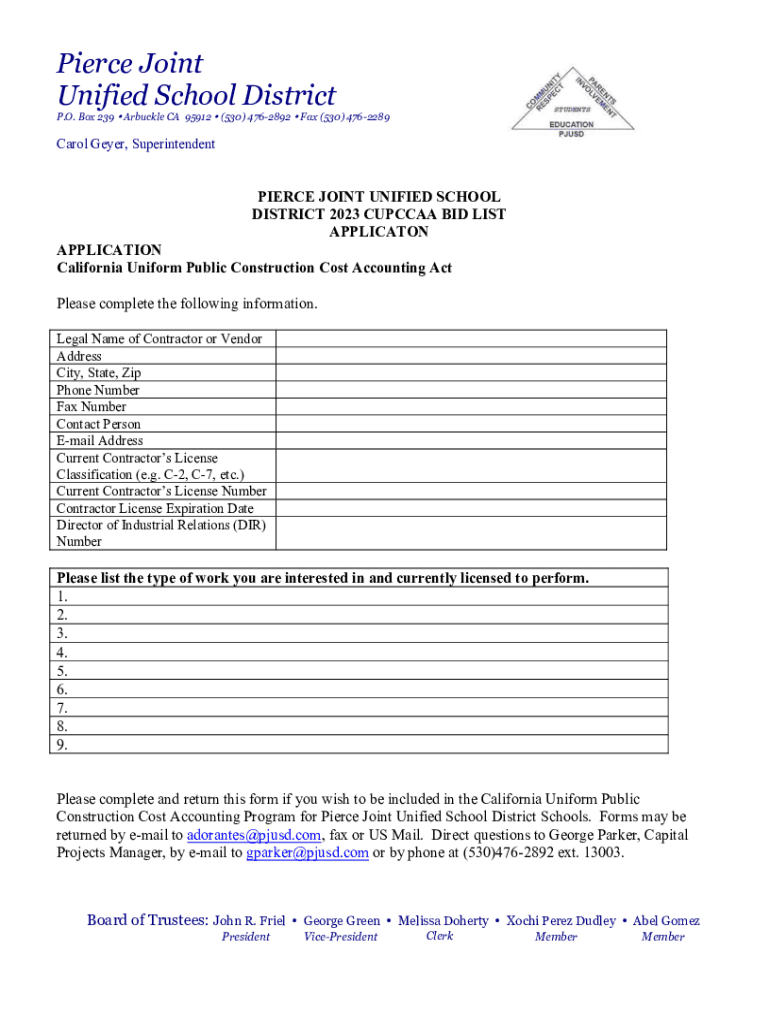 Get the free Business Services - Pierce Joint Unified School District