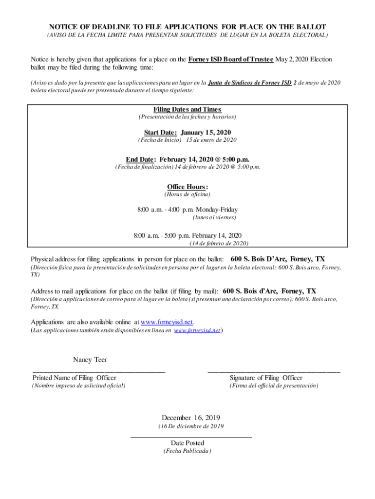 Obtener el gratis notice of deadline to file applications for - Grand Prairie ISD