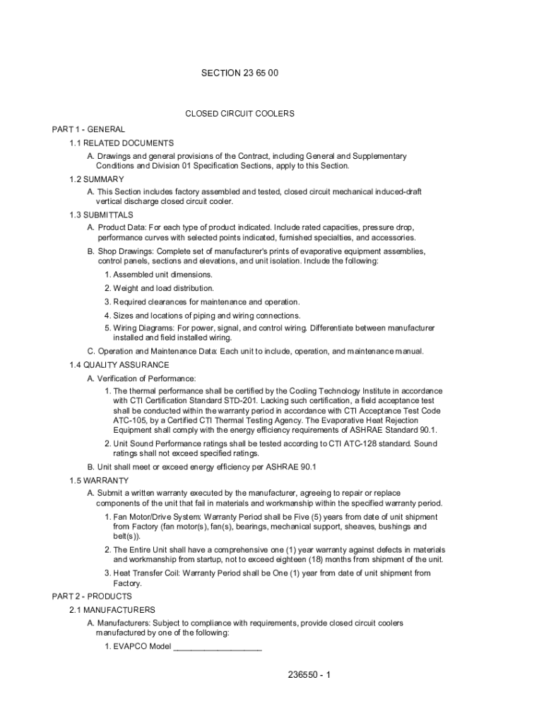 SECTION 23 65 00CLOSED CIRCUIT COOLERS PART 1 GENERAL 1.1 RELATED DOCUMENTS A. Drawings and general provisions of the Contract, including General and Supplementary Conditions and Division 01 Specification