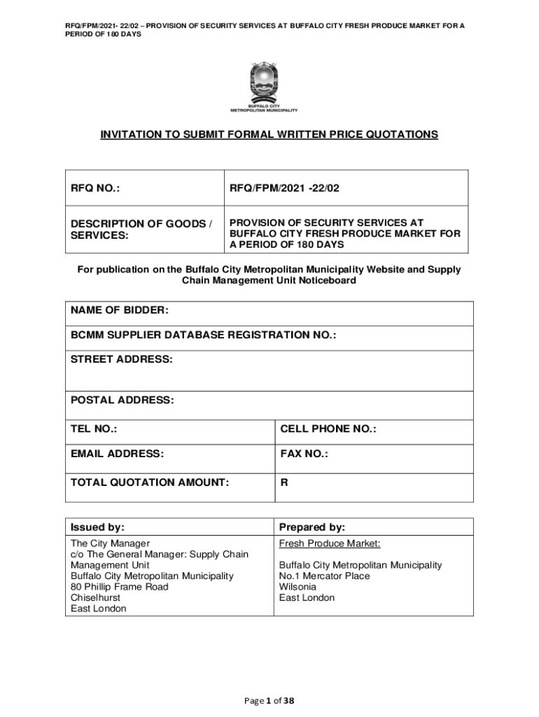 Get the free Provision of Security Services at Buffalo City Fresh Produce ...