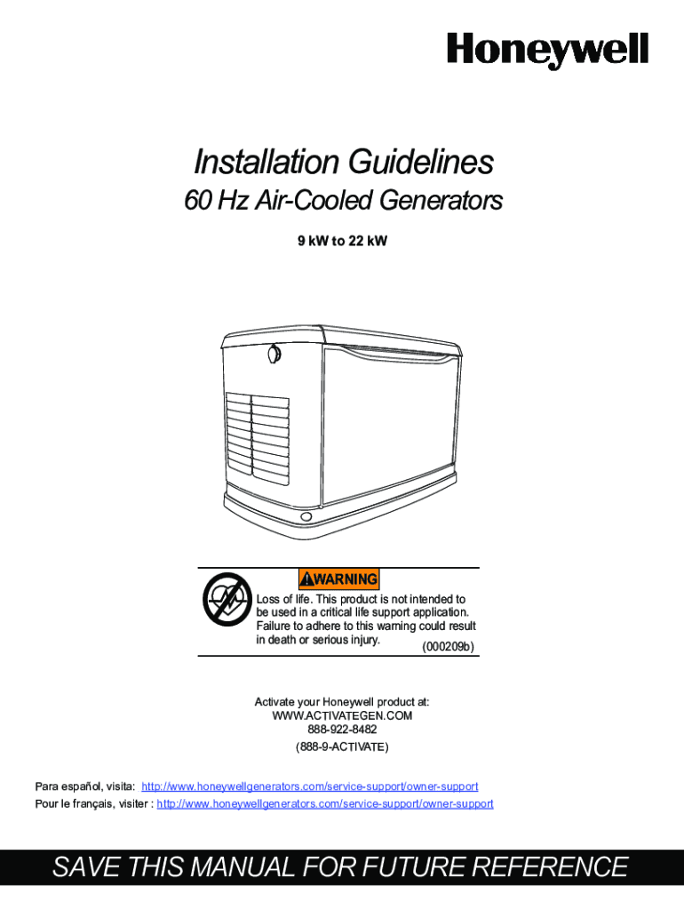 Installation Guidelines 60 Hz Circuited Generators 9 kW to 22 warning Loss of life. This product is not intended to be used in a critical life support application. Failure to adhere to this warning