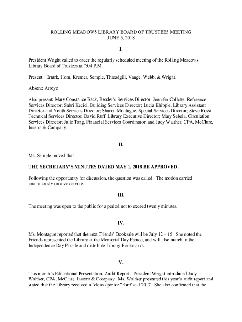 ROLLING MEADOWS LIBRARY BOARD OF TRUSTEES MEETING