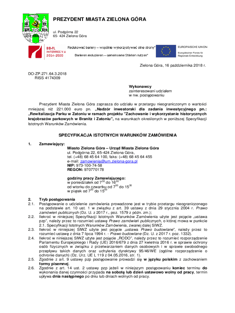 Get the free Nadzr rewitalizacj parku w Zatoniu - Miasto Zielona Gra - bip zielonagora