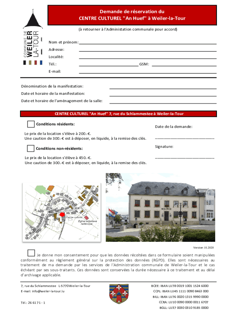 Obtenir le gratuit Demande de rservation du CENTRE CULTUREL "An Huef"...