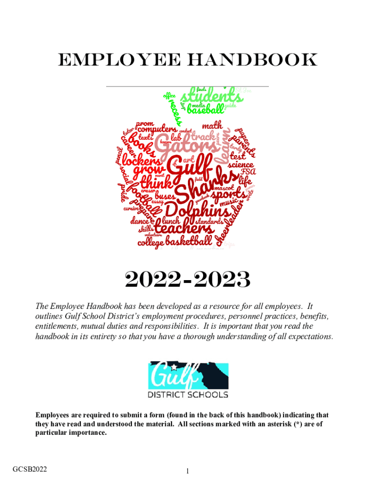 Employee handbook20222023 The Employee Handbook has been developed as a resource for all employees. It outlines Gulf School Districts employment procedures, personnel practices, benefits, entitlements,