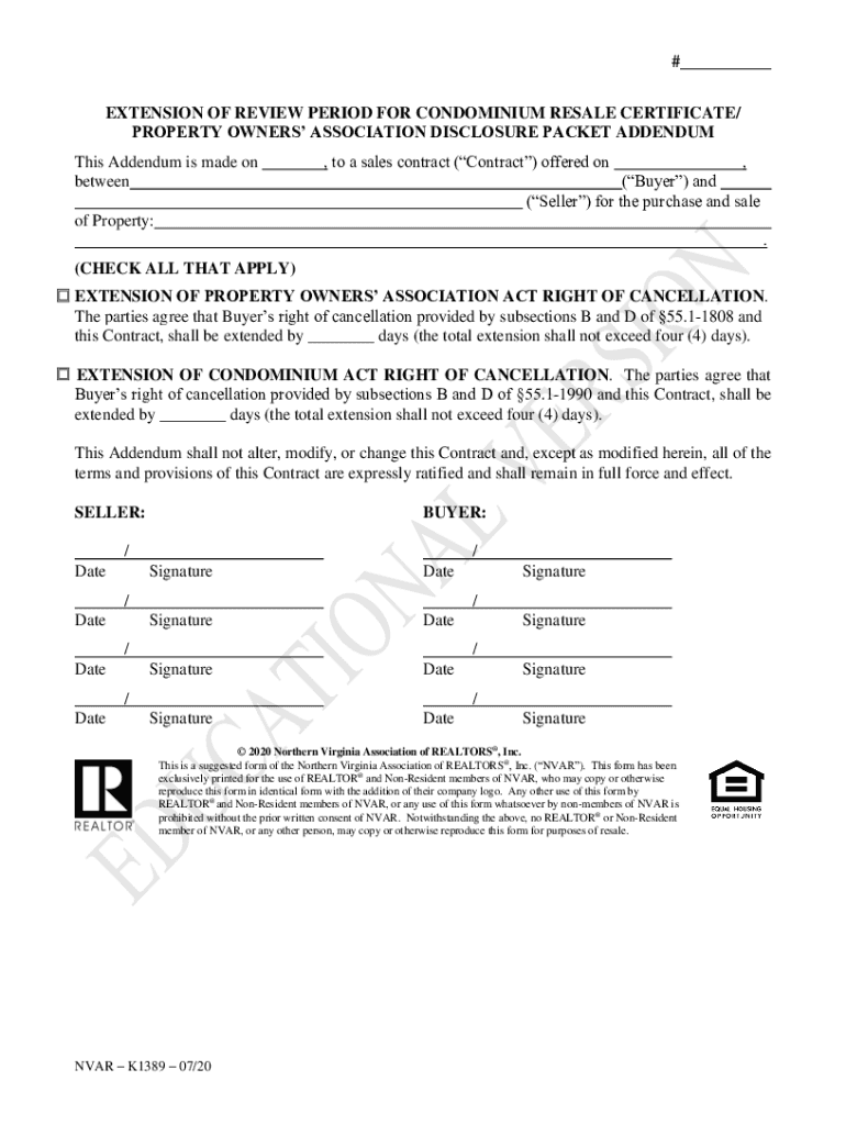 Get the free EXTENSION OF REVIEW PERIOD FOR CONDOMINIUM ...