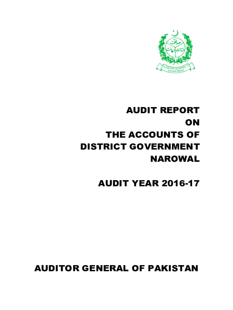 Get the free Audit Report on the Accounts of District Government Narowal ... - agp gov