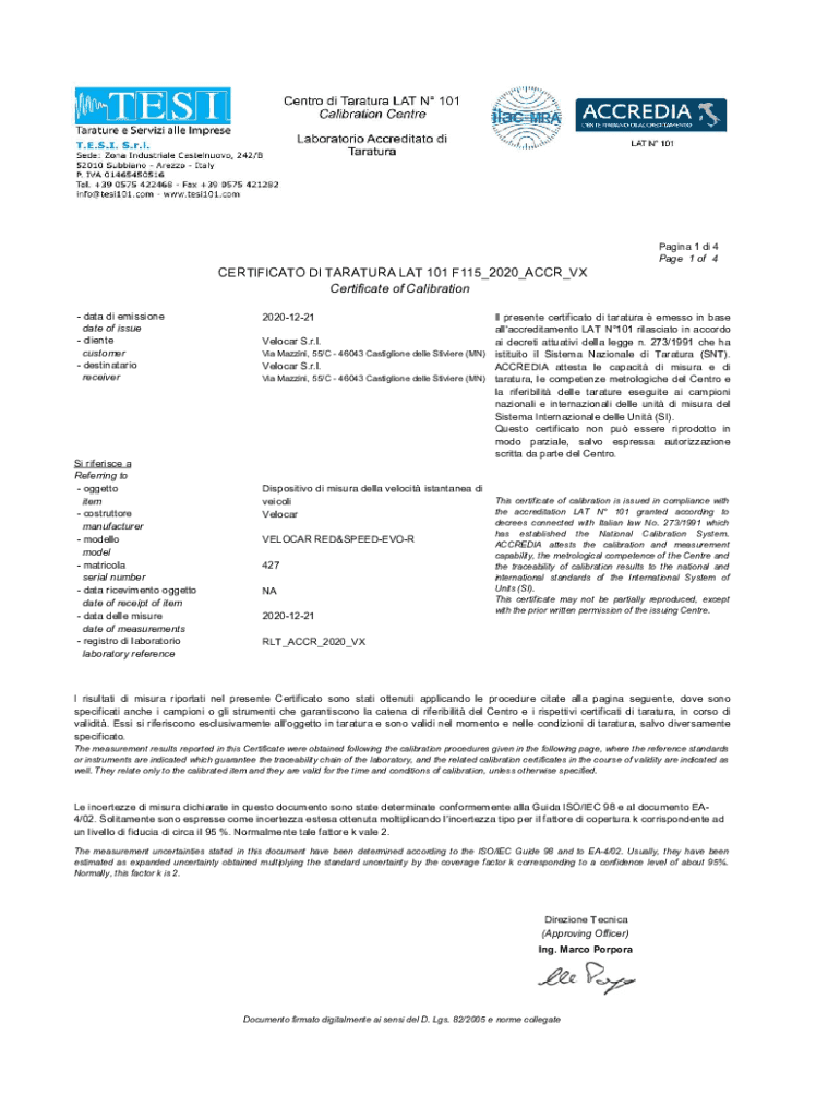 Paging 1 DI 4-Page 1 of 4CERTIFICATO DI TARANTULA LAT 101 F115_2020_ACCR_VX Certificate of Calibration data DI emission date of issue client customer destination receivers reference a Referring to