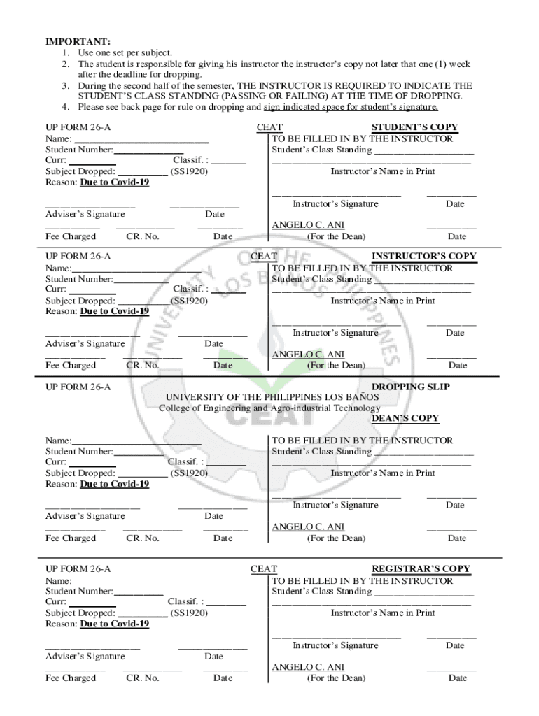 Dropping-form-covidpdf - ceat ocs can be filled out electronically or manually, following the instructions provided on the form.