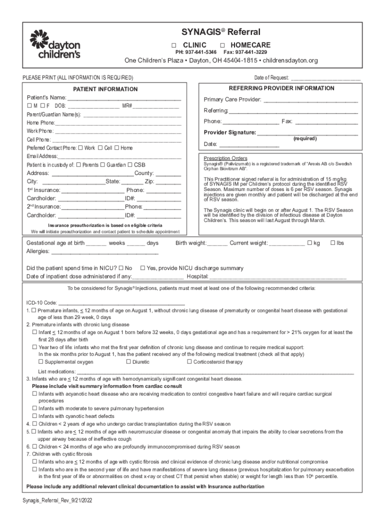SNAGS Referral CLINIC PH: 9376415346HOMECAREFax: 9376413229One Children's Plaza Dayton, OH 454041815 childrensdayton.org PLEASE PRINT (ALL INFORMATION IS REQUIRED)Date of Request:___PATIENT INFORMATION