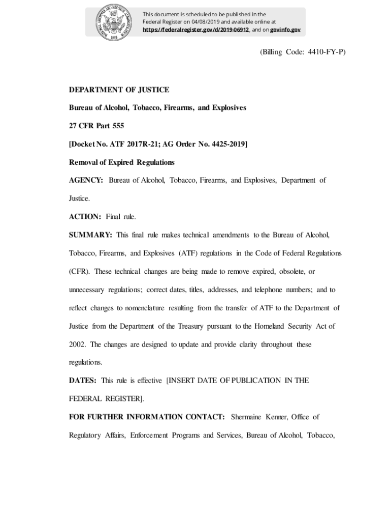 This document is scheduled to be published in the Federal Register on 04/08/2019 and available online at https://federalregister.gov/d/201906912, and on gov info.gov(Billing Code: 4410FYP)DEPARTMENT