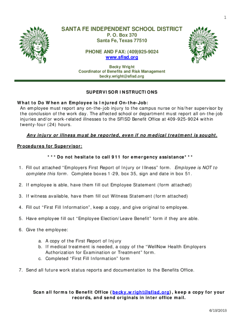 1SANTA FE INDEPENDENT SCHOOL DISTRICT P. O. Box 370 Santa Fe, Texas 77510 PHONE AND FAX: (409)9259024 www.sfisd.org Becky Wright Coordinator of Benefits and Risk Management becky.wright@sfisd.orgSUPERVISOR