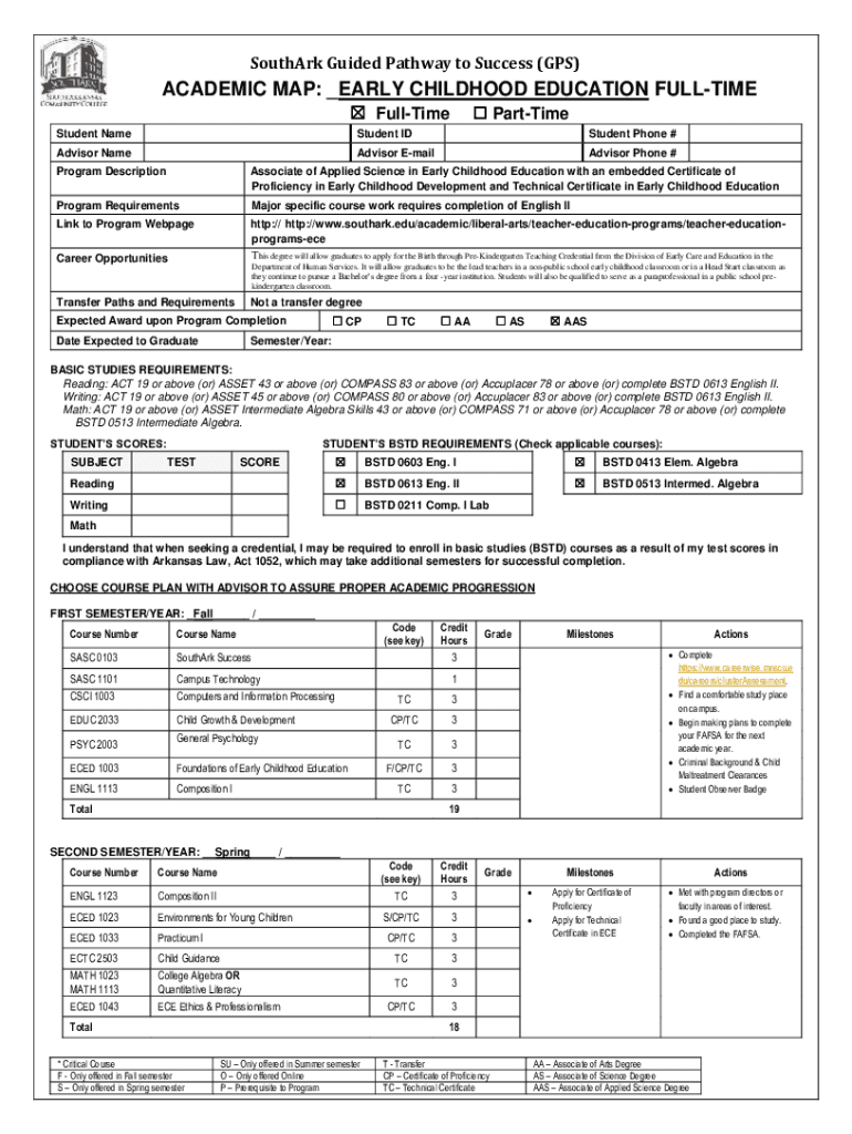 South Ark Guided Pathway to Success (GPS)ACADEMIC MAP: _EARLY CHILDHOOD EDUCATION FULL TIME