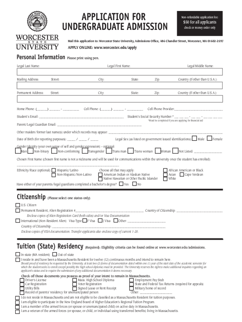 Get the free APPLICATION FOR UNDERGRADUATE ADMISSION Worcester ...