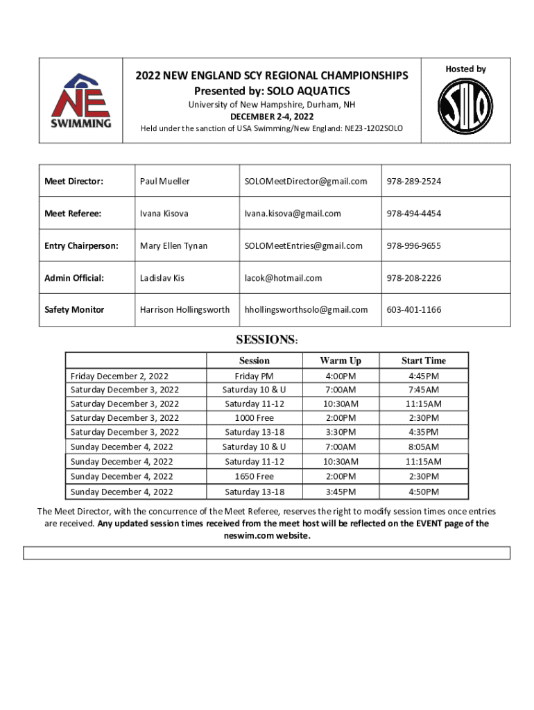 Held under the sanction of USA Swimming/New England: NE231202SOLOMeet