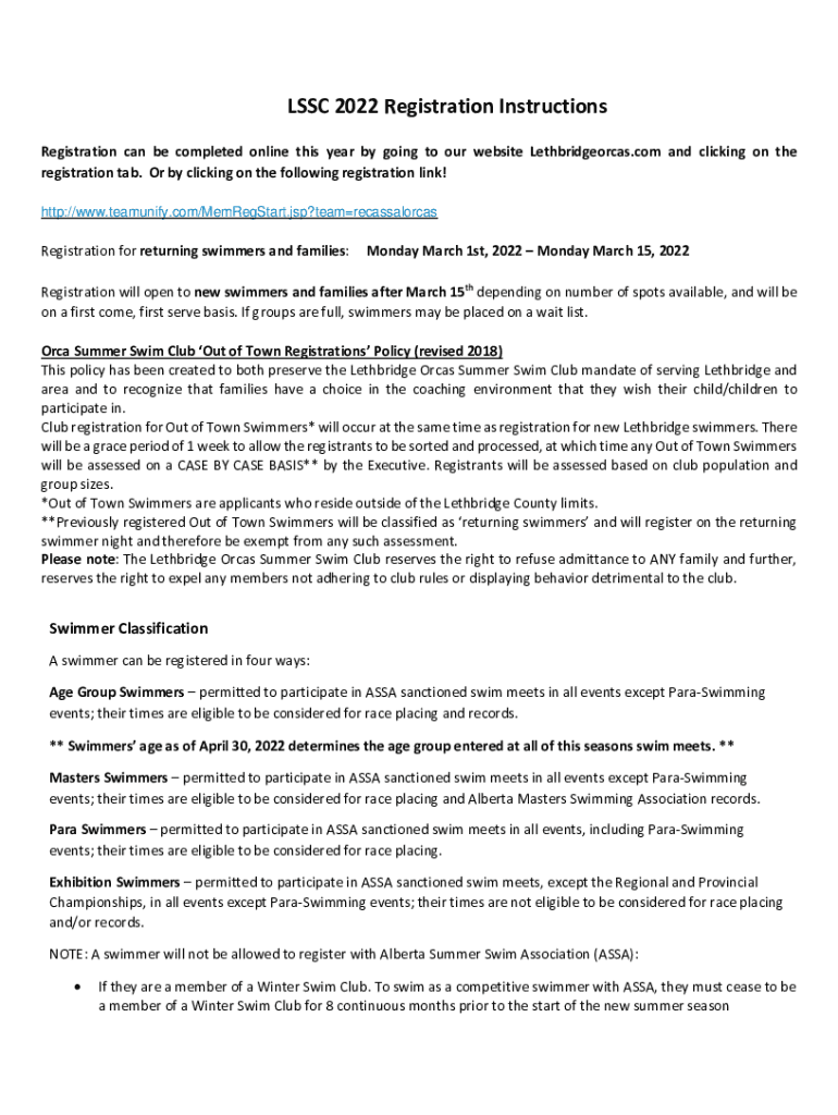 LSC 2022 Registration Instructions Registration can be completed online this year by going to our website Lethbridgeorcas.com and clicking on the registration tab. Or by clicking on the following