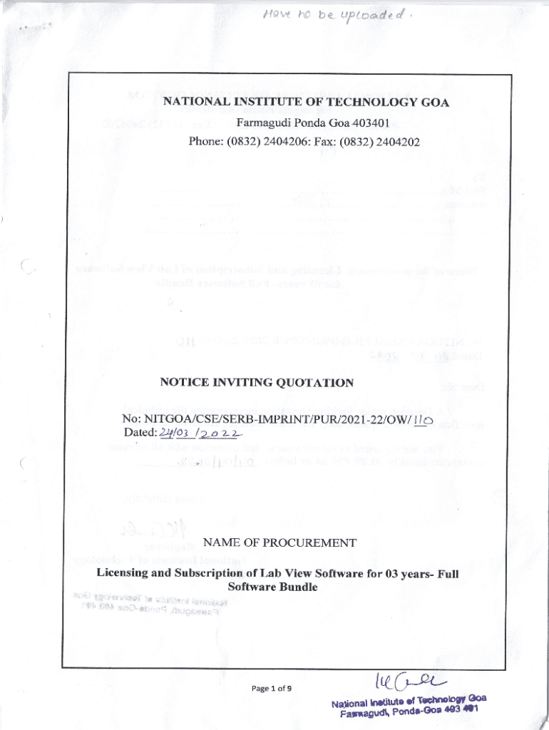 Phone: (0832) 2404206: Fax: (0832)2404202(, NOTICE INVITING QUOTATION