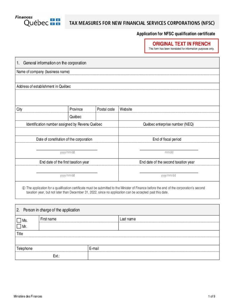 Application for NFC qualification certificateORIGINAL TEXT IN FRENCH7.00 7This form has been translated for information purposes only.1.