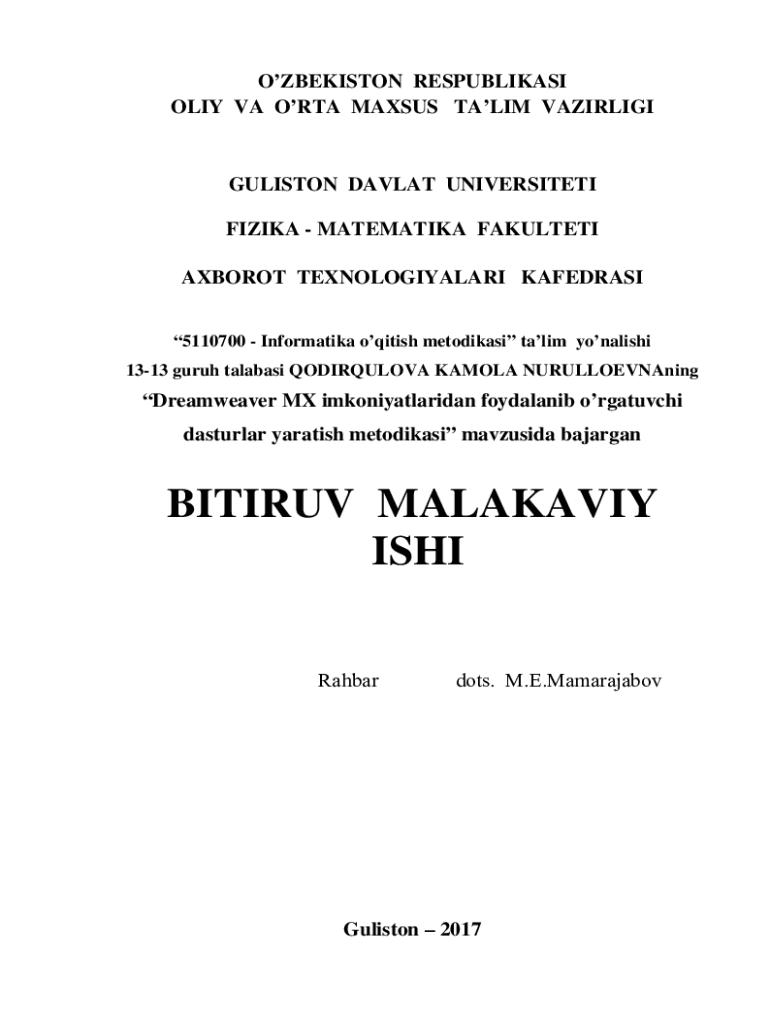 OLIN VA AORTA MAX SUS TALI VAZIRLIGIGULISTON DAV LAT UNIVERSITY