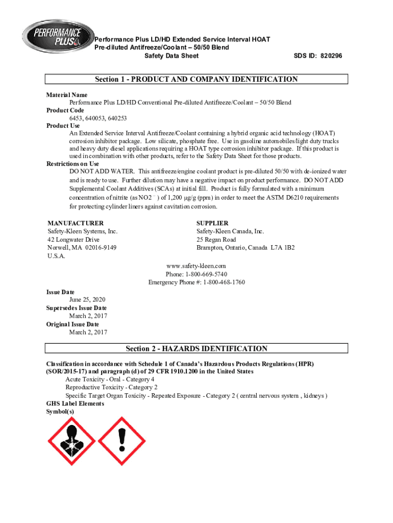 Get the free SAFETY DATA SHEET HD Extended Life Antifreeze (50/50)